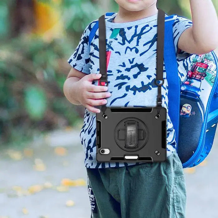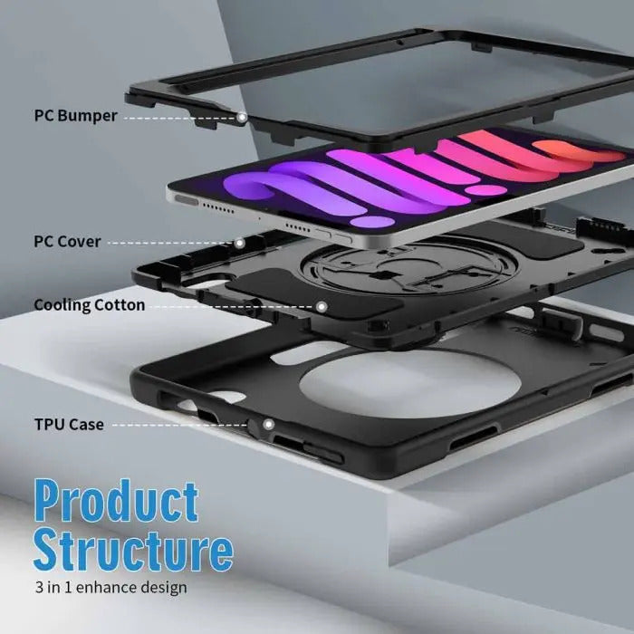 RIN-IPAD-M6 | IPAD MINI 6/7 | RAINPROOF MILITARY GRADE RUGGED CASE WITH HAND STRAP AND KICK-STAND SUPPORTS APPLE PENCIL WIRELESS CHARGING
